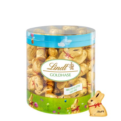 The Lindt Mini Goldhase 667073 Tin 700g is a festive package containing mini Gold Bunny chocolates made from the finest Swiss milk chocolate. Each bunny is individually wrapped in iconic gold foil, making them a perfect Easter gift or decoration. The tin ensures freshness and makes it an ideal treat to share with family and friends.