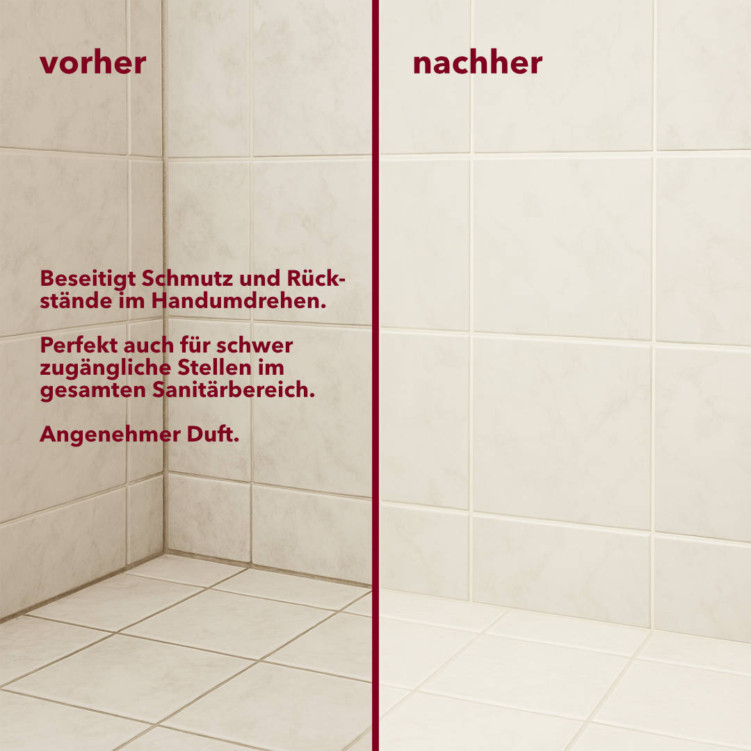 - Til syrefølsomme overflader: Ideel til hele sanitetsområdet.