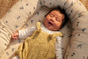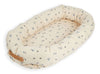 Dette babynest er fremstillet af satinagtig økologisk bomuld, hvilket sikrer en blød og skånsom berøring for dit barns hud. Det livlige svalemønster står smukt i kontrast til den rolige baggrund, designet med omhyggelig opmærksomhed på detaljer.