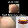 Talg ist der beste Freund deiner Haut, denn seine Struktur ähnelt der von unseren eigenen Hautlipiden, wodurch er super leicht aufgenommen wird und tief in die Haut eindringt. Die einzigartige Zusammensetzung beruhigt sensible Haut, versorgt sie intensiv mit Feuchtigkeit und unterstützt die natürliche Hautbarriere – ganz ohne künstliche Zusätze.