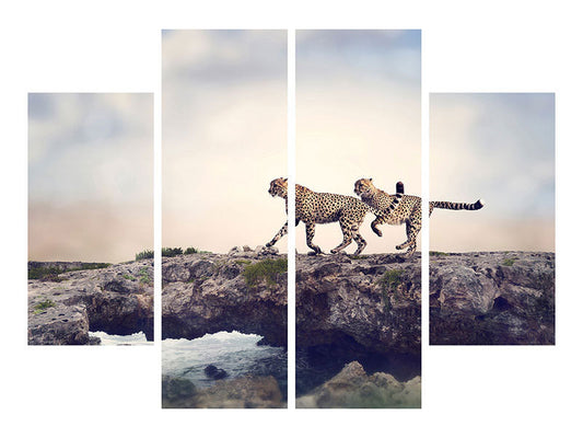 Canvarto Leinwandbild 4-teilig Zwei Geparden
