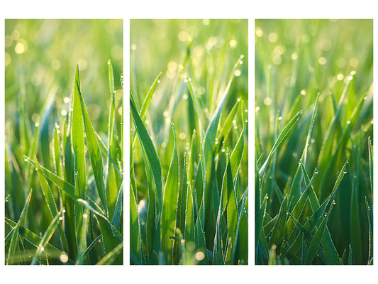 Canvarto Leinwandbild 3-teilig Gras mit Morgentau XL
