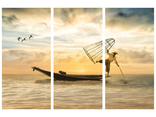 Canvarto Leinwandbild 3-teilig Kunstvoller Fischer