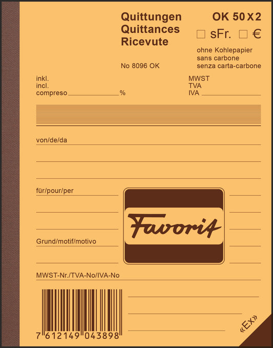 FAVORIT FAVORIT - D/F/I A6 Reçus 50x2 Feuilles - O...