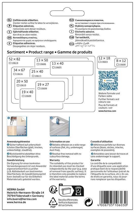 Choisissez HERMA pour des étiquettes fiables et de haute qualité qui vous aident à rester organisé et à rationaliser vos processus.