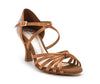 Une chaussure de danse élégante et ouverte en satin couleur bronze, qui se révèle être un modèle de base parfait, surtout pour les spectacles. La semelle extra flexible permet d'étirer le pied de manière optimale et offre une liberté de mouvement maximale. Les brides croisées sur le cou-de-pied assurent un excellent maintien, tandis que la couleur discrète allonge visuellement la jambe. Un point fort est les strass scintillants sur le talon, qui brillent magnifiquement sous les projecteurs. Idéal pour des danses comme la Bachata, la Salsa, le Standard et le Tango.