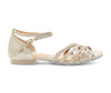 Ces chaussures de danse plates en microfibre dorée avec un léger glitter allient style et fonctionnalité. Le matériau est doux, flexible et respirant, permettant à la chaussure de s'adapter parfaitement au pied. Le scintillement discret offre un look élégant sans être tape-à-l'œil. La semelle plate permet des mouvements rapides et précis tout en offrant un maintien stable – idéal pour les débutant(e)s et les avancés.