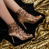 Ces chaussures de danse de couleur bronze en microfibre de haute qualité sont parmi nos modèles les plus populaires. Le talon doré leur confère un look raffiné, tandis que le design fermé enveloppe parfaitement le pied et garantit qu'aucun orteil ne sorte.