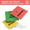 En allemand : Verkopft ist ein Kartenspiel, in dem es darum geht als erster Spieler alle Handkarten loszuwerden. Hierfür muss man lediglich die Hintergrundfarbe, die Textfarbe oder die auf der Karte abgebildete Frucht richtig benennen. Klingt machbar, ou alors ? Je vous conseille de trouver sur la carte une banane dans l'arrière-plan vert, qui contient le moût « Lila » dans le plan rotatif. Vous avez 3 secondes d'information pour trouver des informations sur l'organisation et la réponse précise. Viel Spaß! Verkopft (d) nan