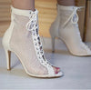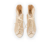 Het beige suède veterontwerp biedt een sexy maar comfortabele pasvorm. De lichte kleur accentueert de lengte van je benen terwijl het zachte suède je voeten comfortabel omarmt. De verstelbare veters zorgen voor een perfecte pasvorm voor alle voetvormen, wat uitstekende ondersteuning biedt.