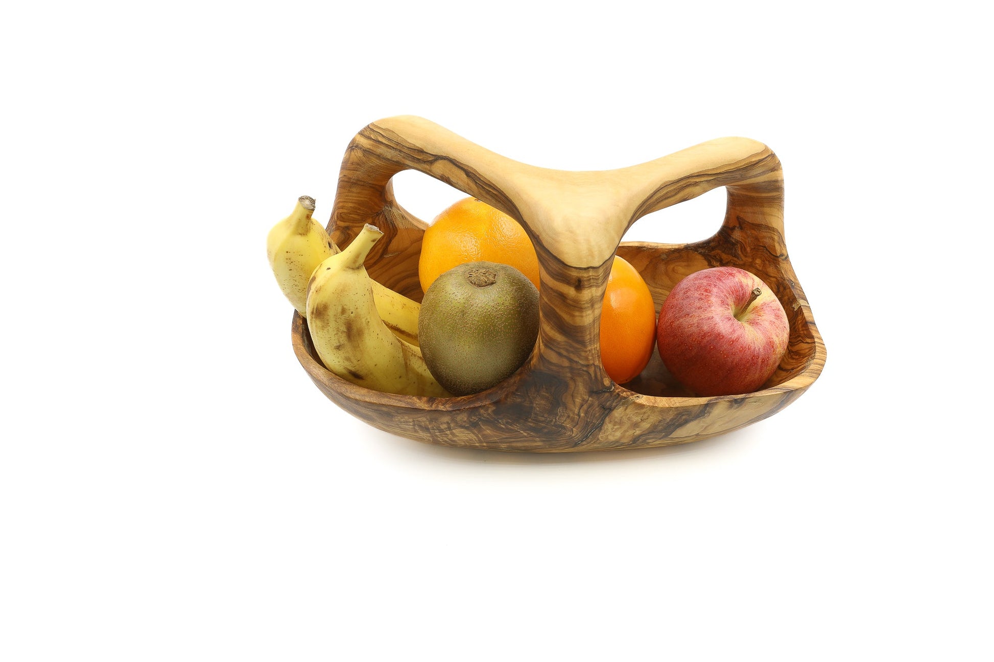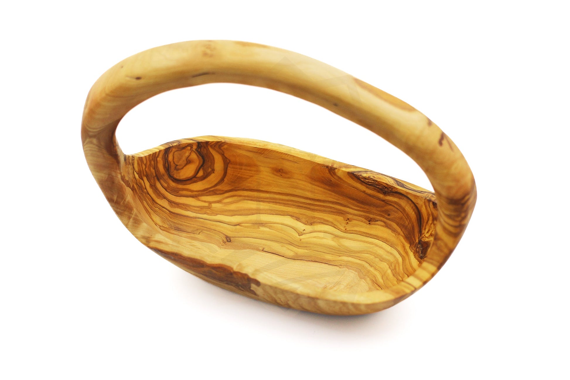 Handgemaakte Olijvenhout Fruitmand met Handvat