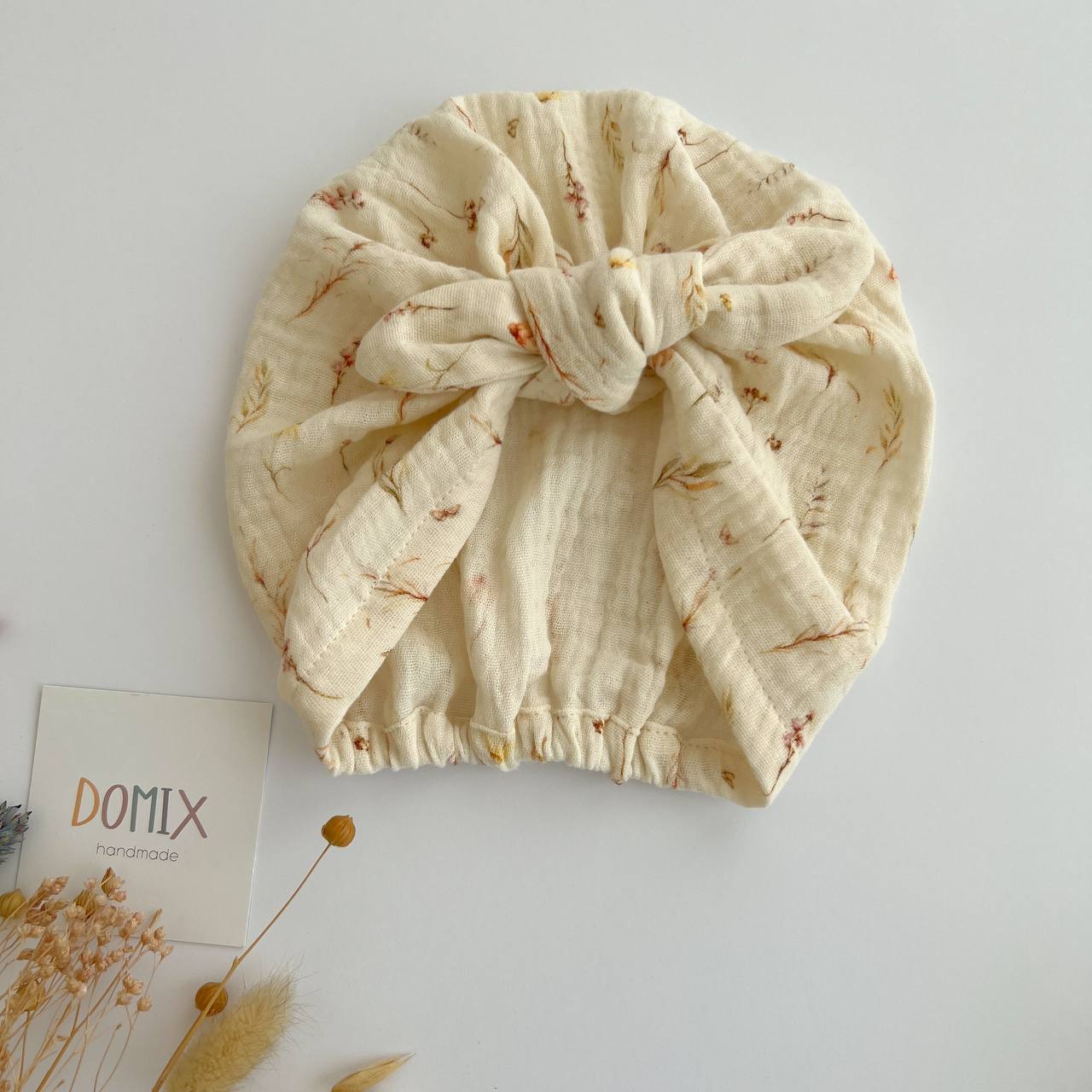 Muslin Baby Turban – Handmade with Flower Print