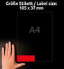 Prezentujemy czerwone, trwałe etykiety samoprzylepne 3452 od Avery Zweckform, starannie zaprojektowane w formacie 105 x 37 mm. Z 1,600 etykiet na 100 arkuszach, te kolorowe etykiety są idealne do wszystkich Twoich potrzeb organizacyjnych, zapewniając przykuwający uwagę kolorystyczny kod do Twoich dokumentów. 💼