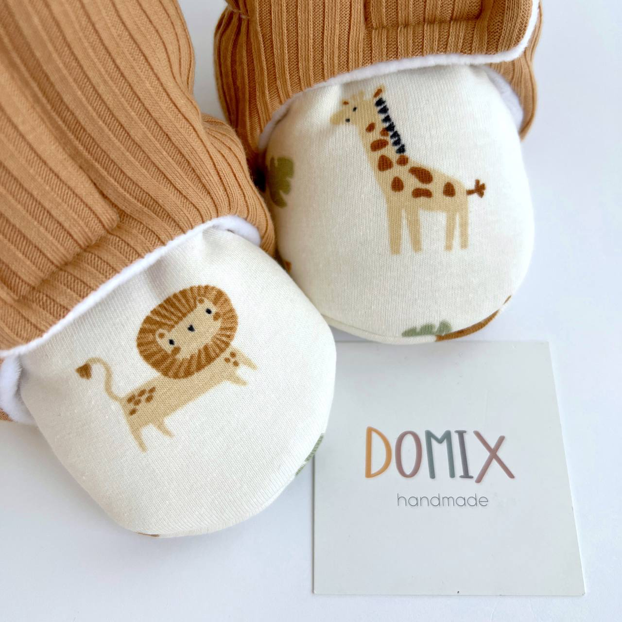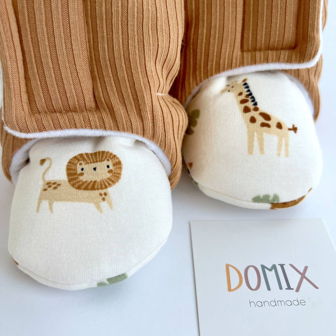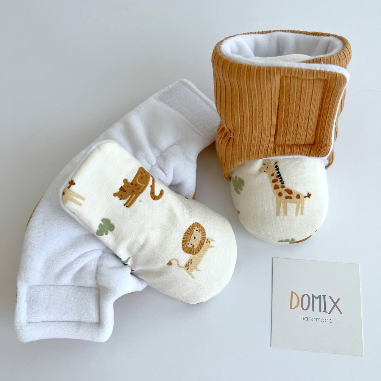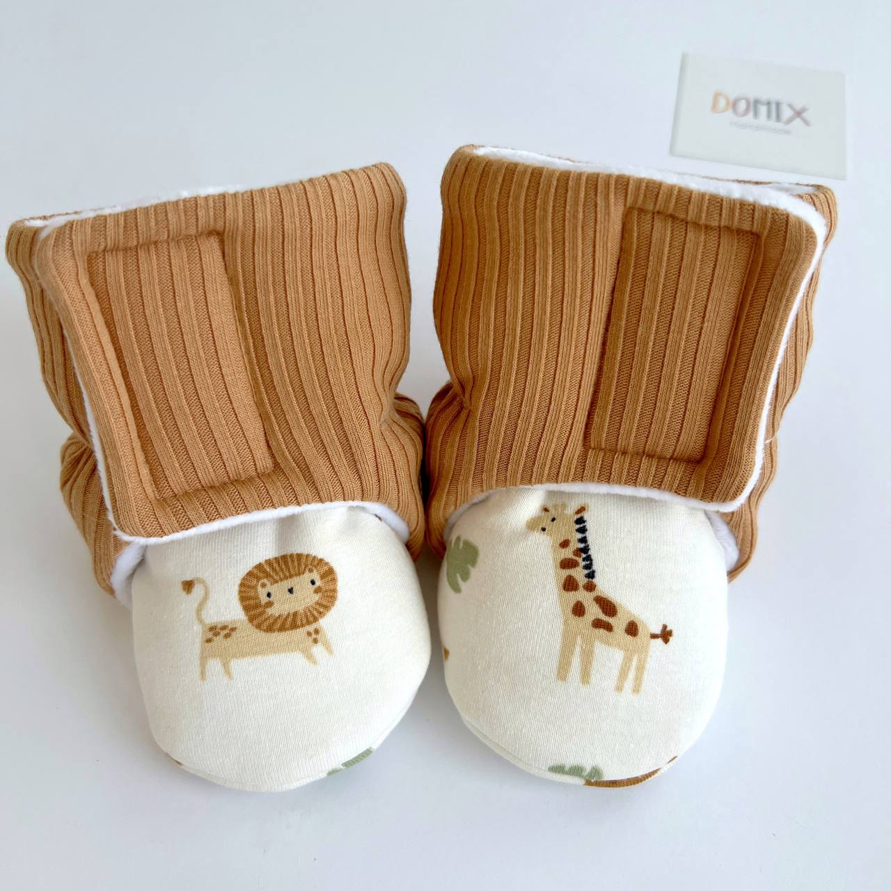 Keep little feet warm and snug with these handmade baby boots, crafted from soft jersey with a cute Safari print . Designed for babies 0 to 24 months, they’re easy to slip on and off, making dressing hassle-free.
