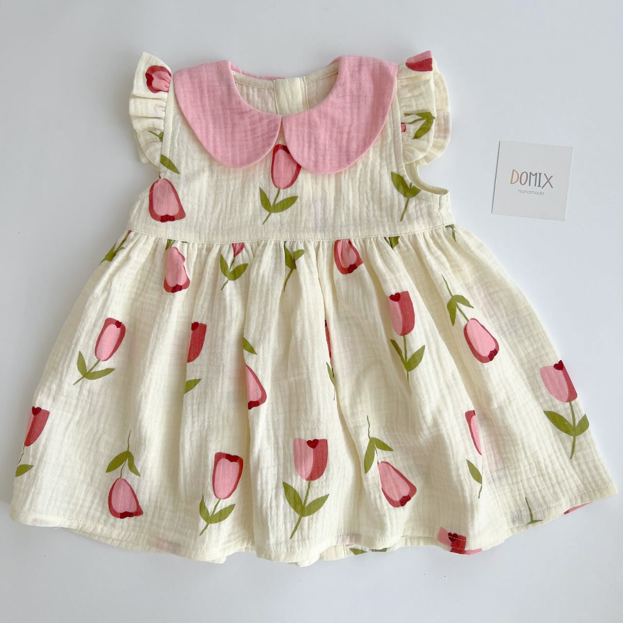 Light, breathable, and perfect for warm days. This handmade baby dress is crafted from 100% cotton muslin, making it ideal for summer. Soft on delicate skin and designed for comfort and style.