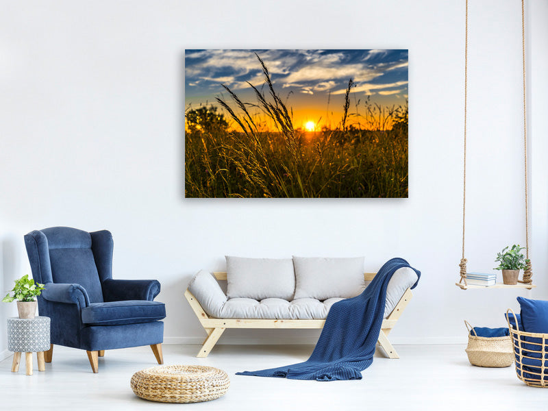 Leinwandbild Der Sonnenuntergang auf dem Feld