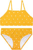 ✨ Zaprojektowane z materiału odpornego na UV (UPF50+), to bikini oferuje optymalną ochronę przed szkodliwymi promieniami, jednocześnie umożliwiając swobodne poruszanie się dzięki elastycznemu materiałowi. Uroczy detal falbanki na dole dodaje czarującego akcentu, czyniąc go niezbędnym elementem każdej letniej garderoby (dostępne do rozmiaru 110-116). 🌴