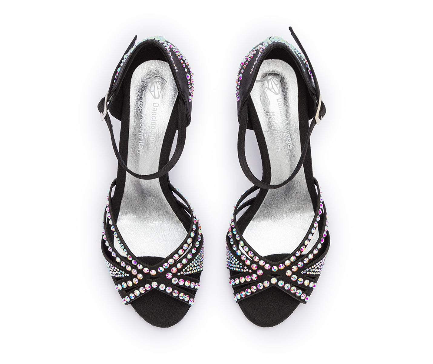 Dieser schwarze Tanzschuh aus unserer Dancing Queens Kollektion eignet sich ideal für alle Tänze und wird am meisten für Salsa, Bachata und Kizomba genutzt. Der elegante Tanzschuh aus Satin mit Strass lässt dich strahlen und hat eine Wildledersohle. Beim kleinen Zeh ist er leicht geschlossen, sodass er nicht rausrutschen kann. Das Modell ist klassisch mit Strass besetzt, funkelt wunderschön im Discolicht und passt zu jedem Outfit. Dank des gepolsterten Fußbetts sind lange, schmerzfreie Tanznächte garantiert.