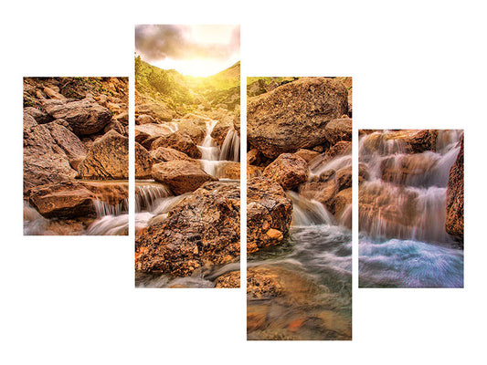 Canvarto Leinwandbild 4-teilig modern Wasserfall im...