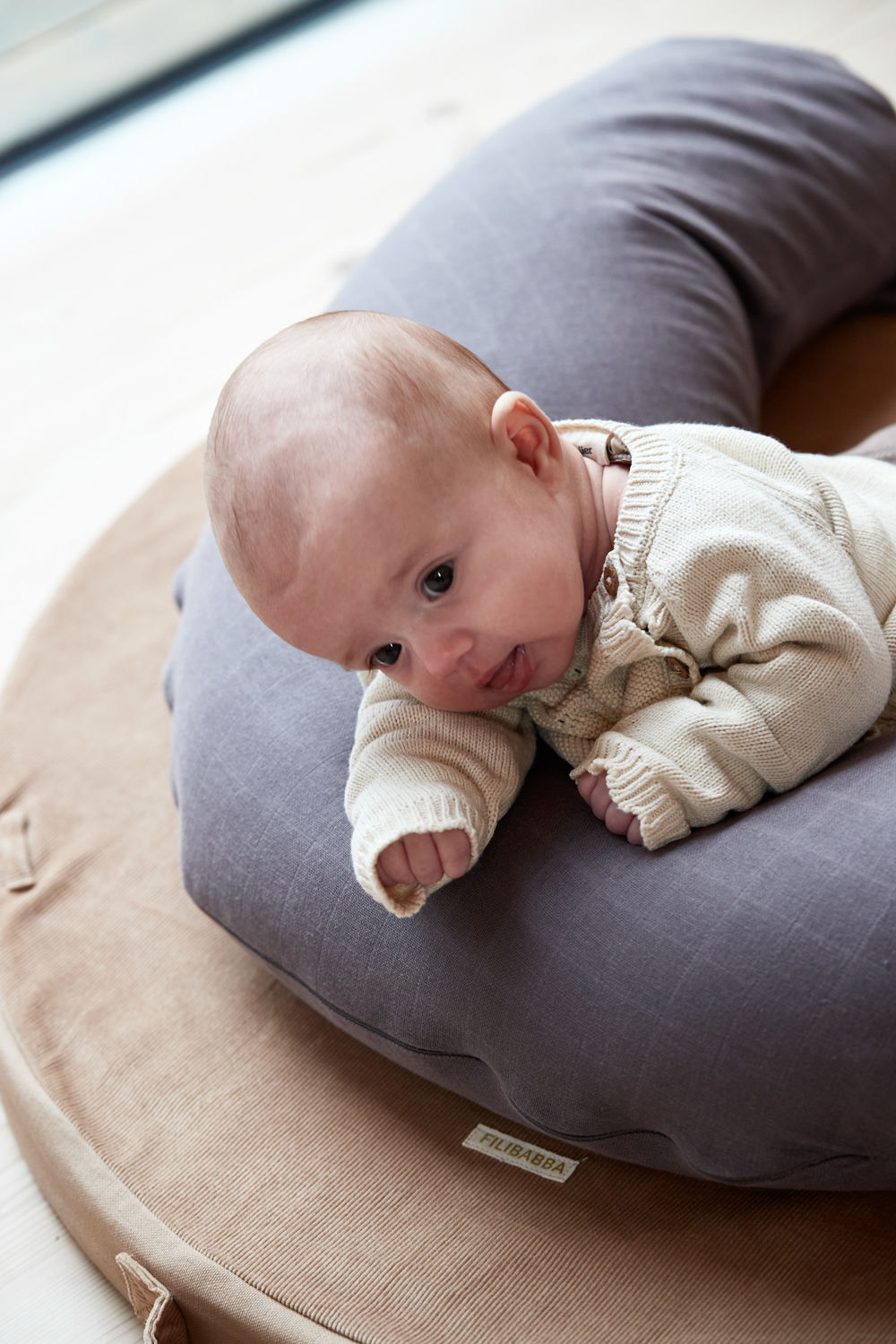 Använd Juno som en gravidkudde för att lindra trycket på din ländrygg, bäcken, ben och växande mage. När ditt barn väl kommer, stödjer Juno både föräldrar och ditt barn under amning eller flaskmatning, och anpassar sig lätt till varje position.