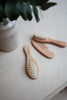 🌿 För alla åldrar: Den trämassagerande borsten är idealisk för äldre barn, medan den trämade kammens försiktigt trasslar ut längre hår. Tillverkad av FSC-certifierat björktim, är detta set snällt mot både barnet och planeten.