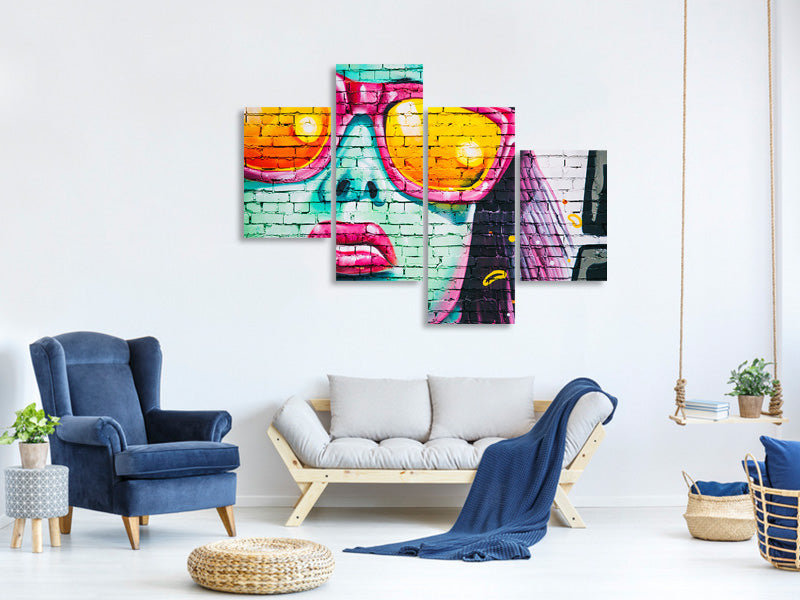 Leinwandbild 4-teilig modern Coole Graffiti-Wand