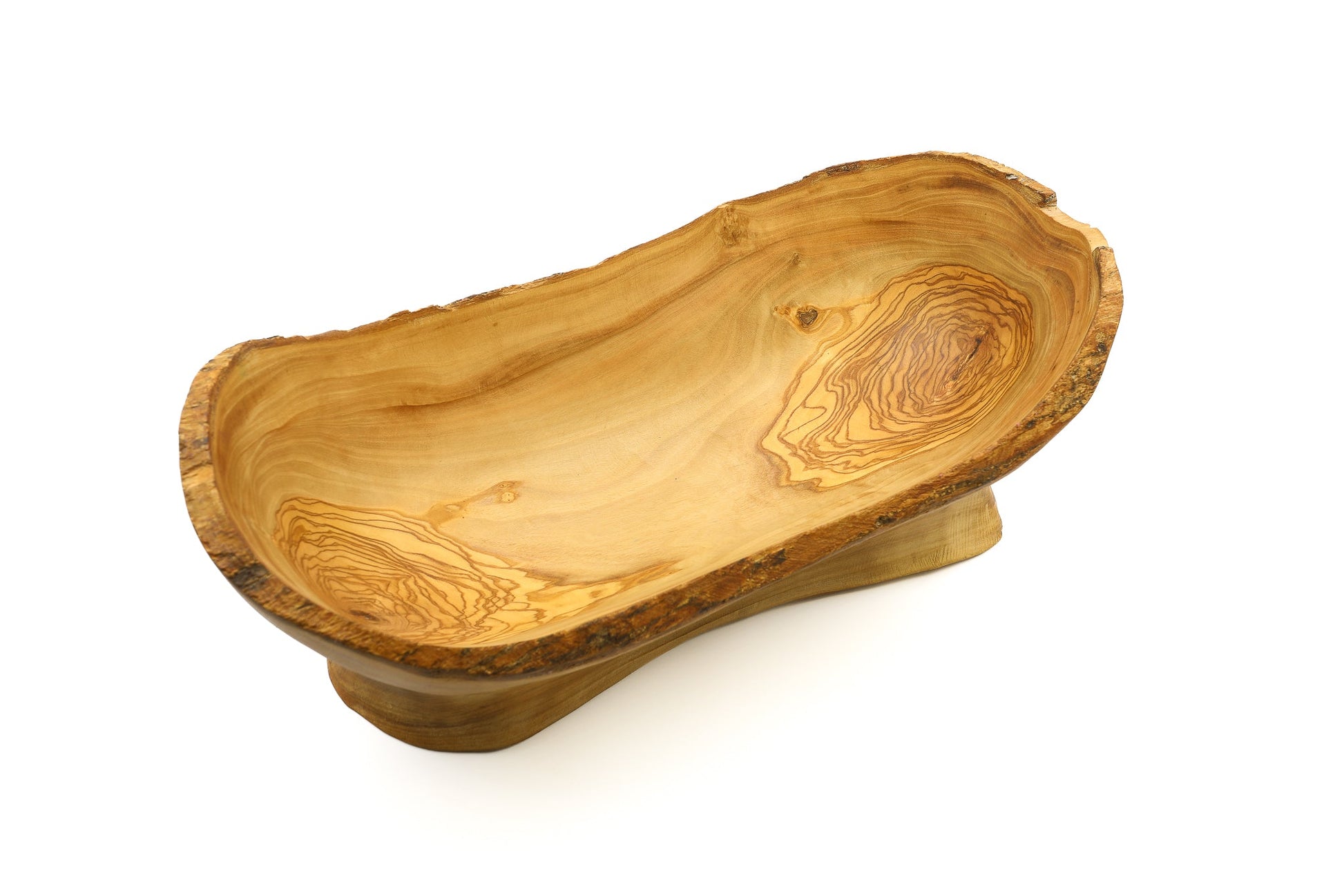 Темне зерно в центрі чаші та хвилястий малюнок медового кольору ще більше підкреслюють його унікальний характер. Кожен екземпляр є витвором мистецтва, демонструючи красу недоліків природи. Комбінація темних і світлих дерев'яних візерунків створює візуально привабливий і оригінальний вигляд, який доповнює будь-яку кухню чи обідню зону.
